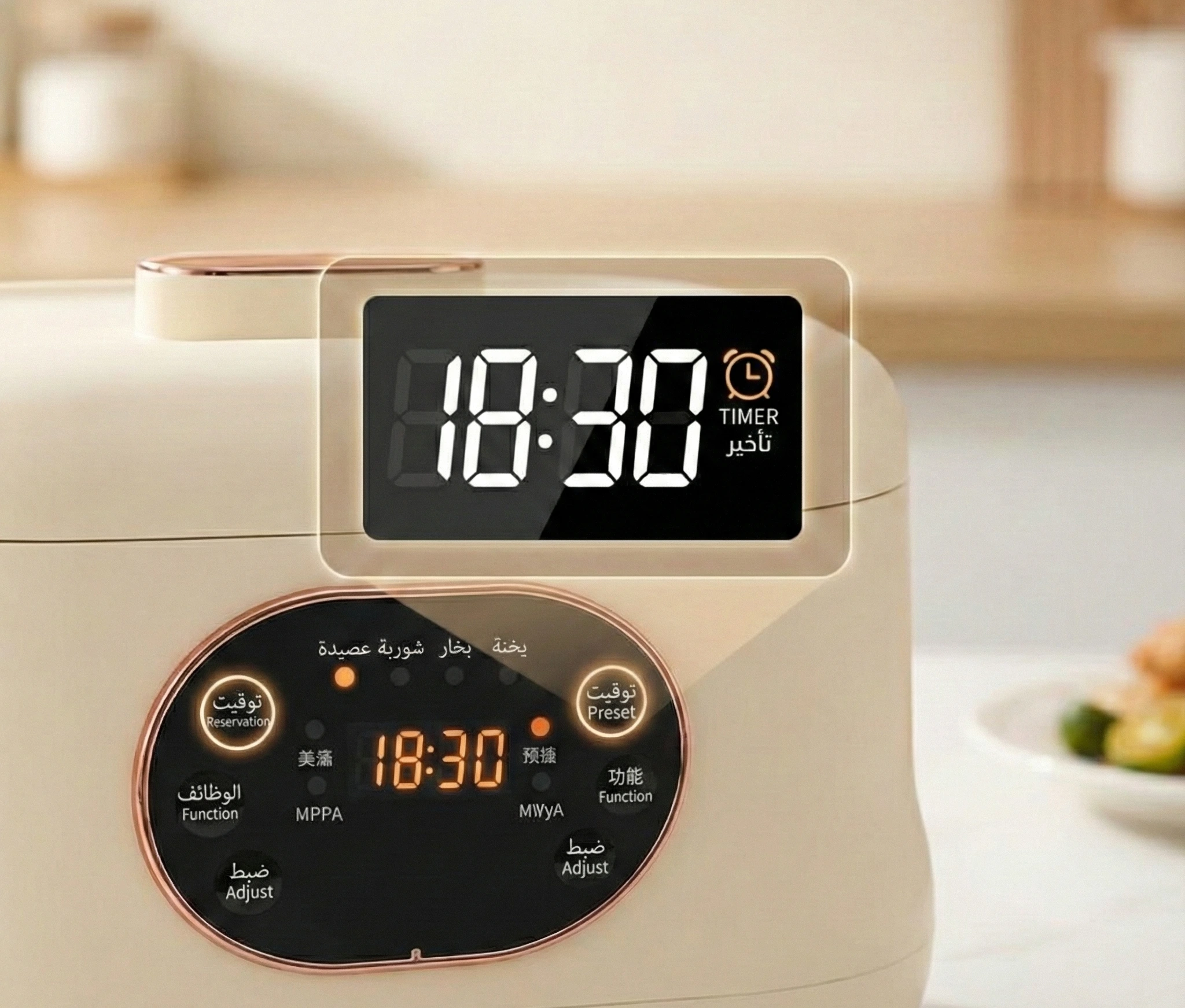 ذكاء الوقت (مؤقت 24 ساعة): جهّز مقاديرك قبل النوم أو قبل الدوام، واضبط خاصية تأخير بدء الطهي لتجد وجبتك ساخنة وجاهزة فور عودتك.