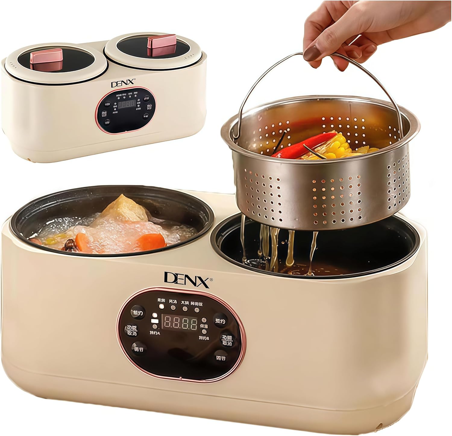 قدر دينيكس المزدوج هو رفيقك الذكي في المطبخ، يطبخ لك طبقين مختلفين تماماً في نفس اللحظة.