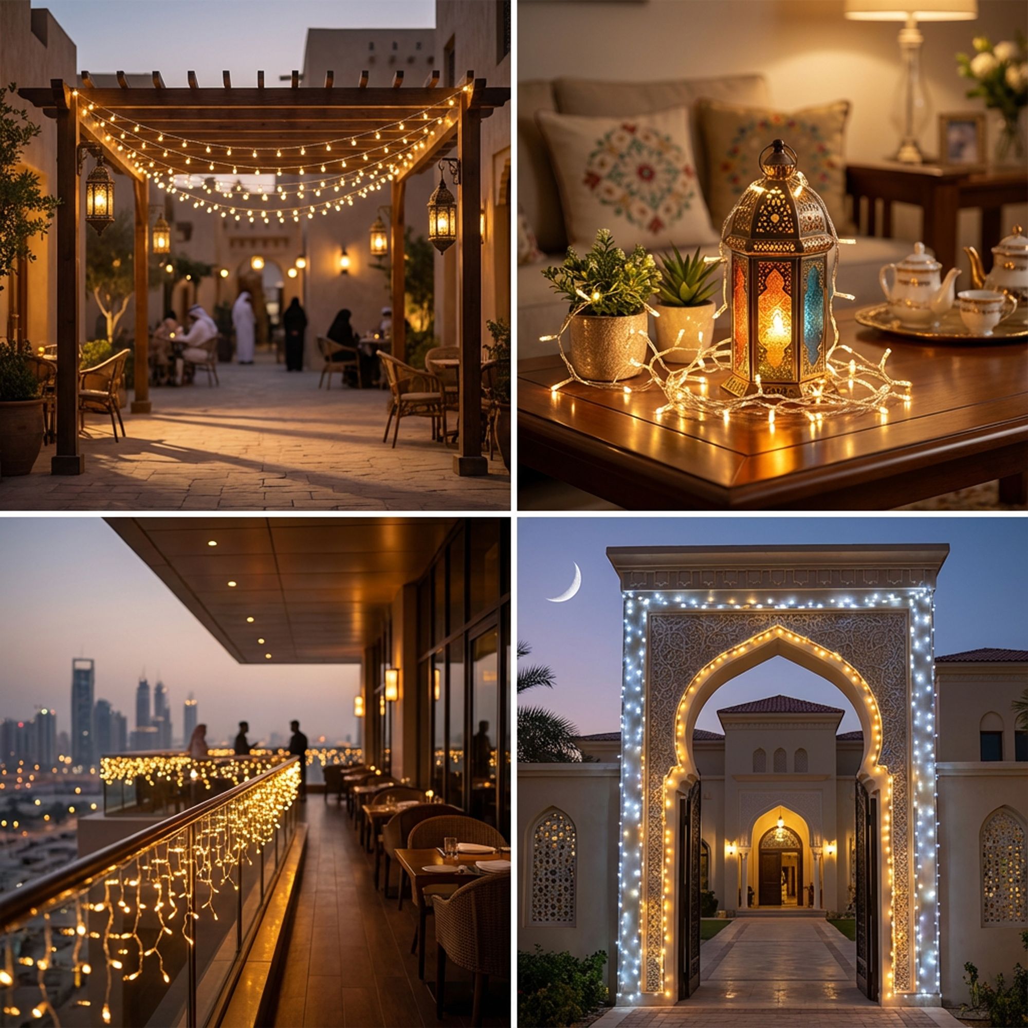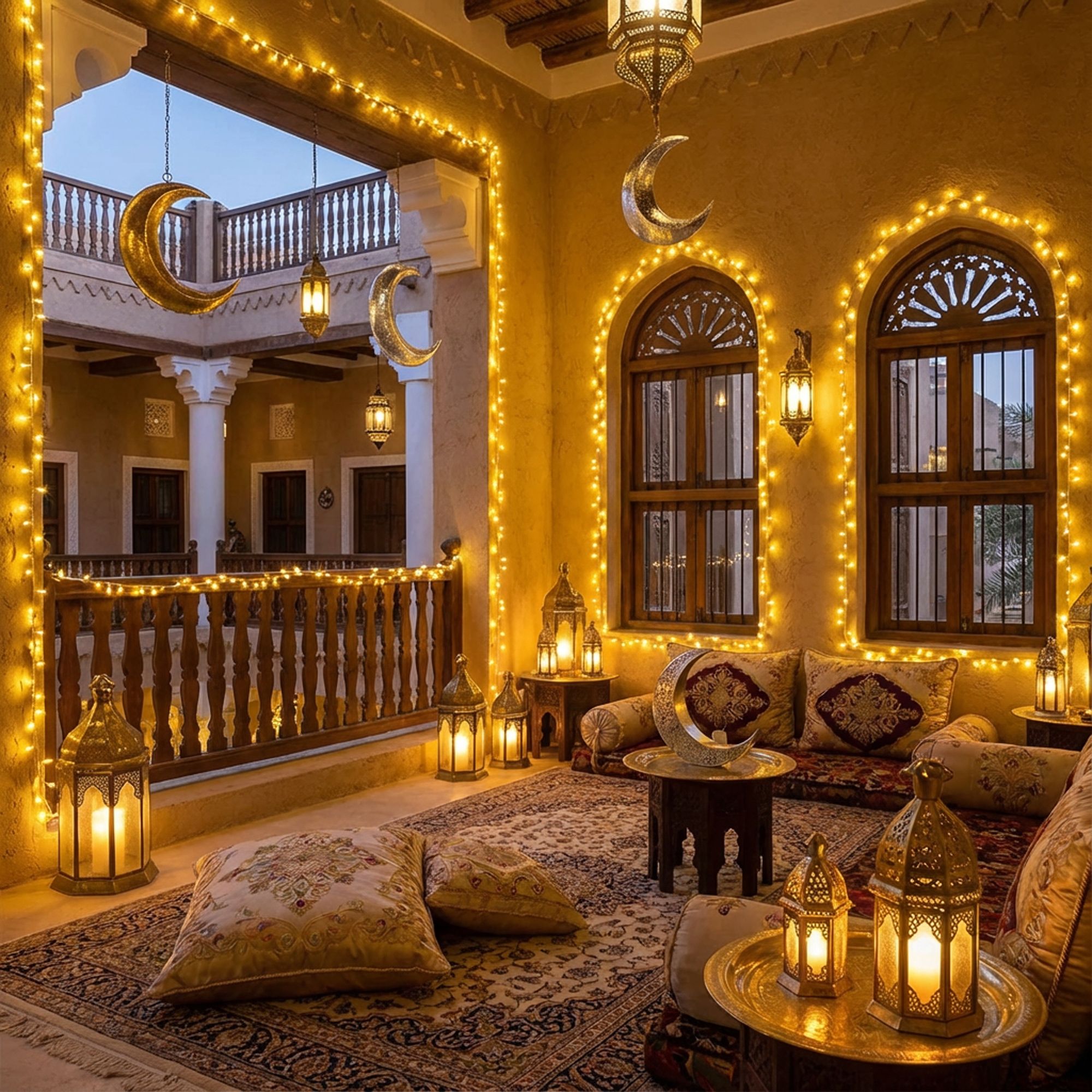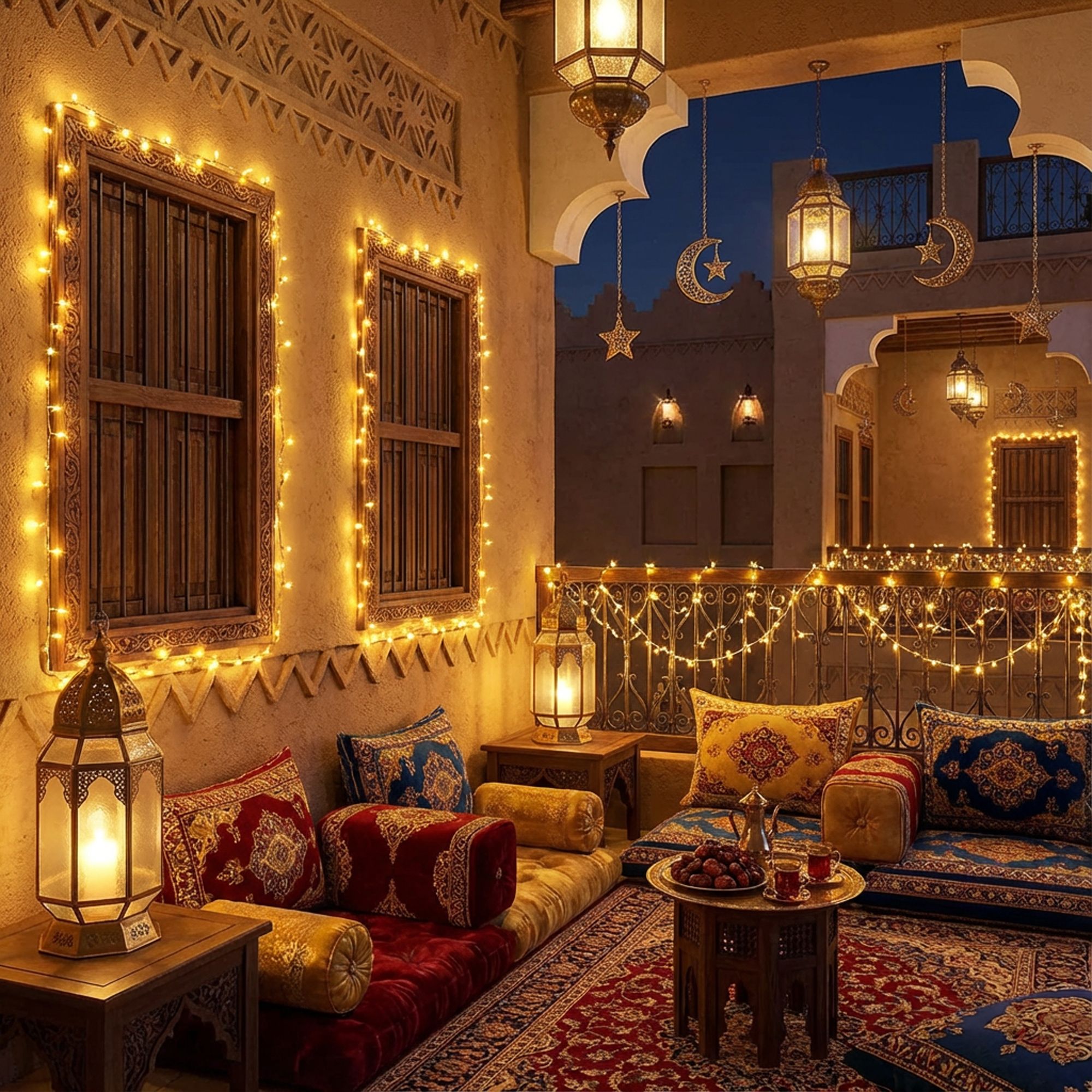 - المجالس الكبيرة: ضعيها حول سقف المجلس لتعطي إضاءة خافتة ودافئة تزيد من جمال اللمة والجلسات الرمضانية.