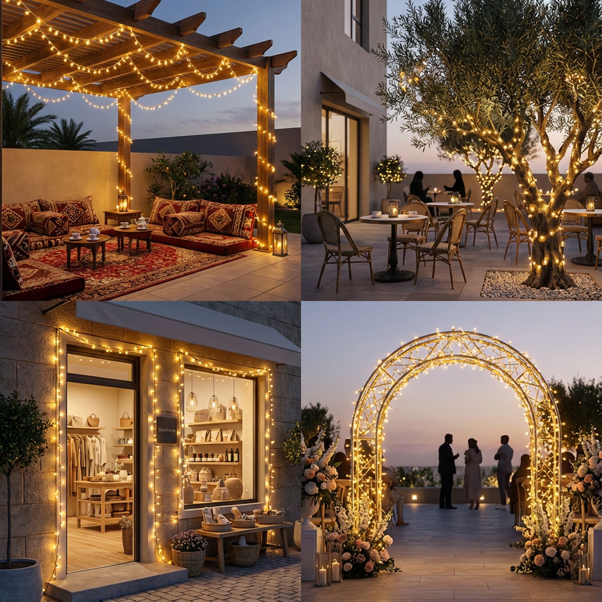 تزيين خارجي بلا حدود: معيار IP44 لمقاومة المطر والحرارة، مصممة خصيصاً لتتحمل أجواءنا الخارجية طوال الشهر الكريم.