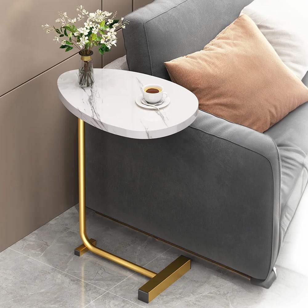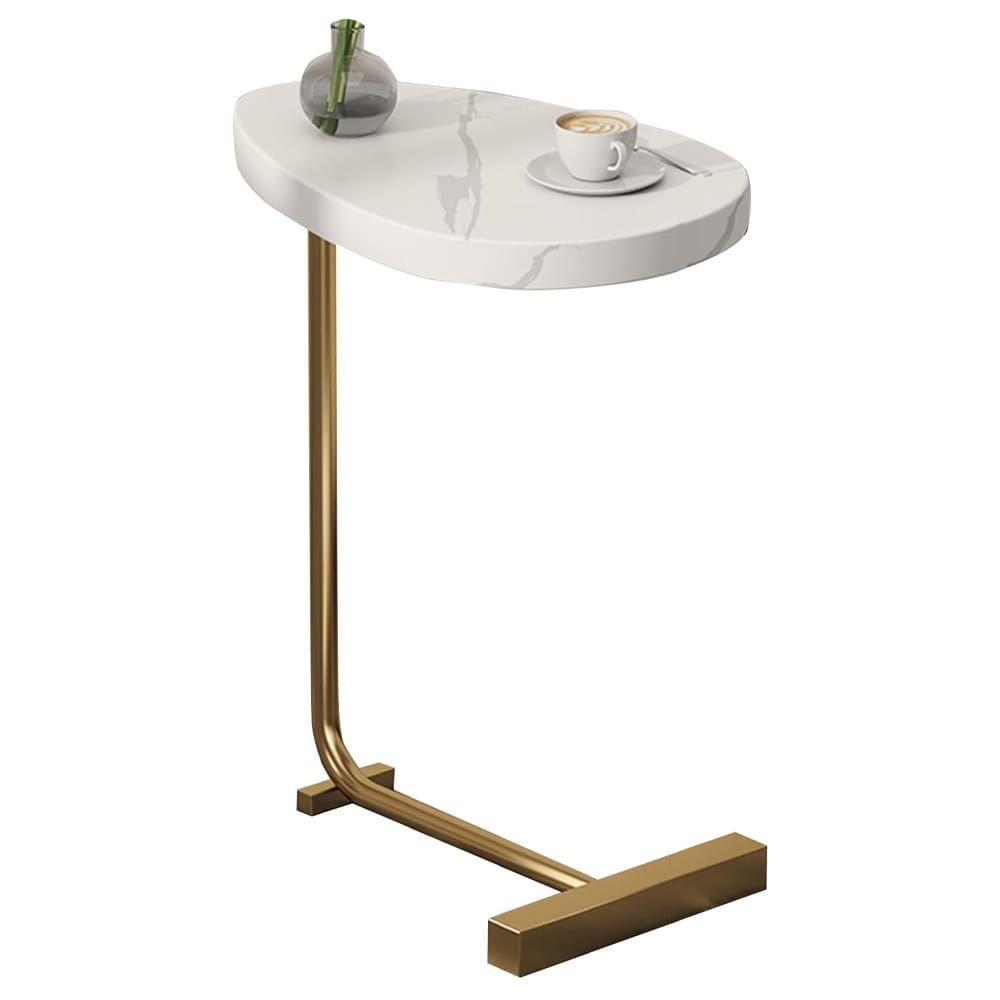 اللون: سطح رخامي أبيض مع قاعدة ذهبية فخمة.